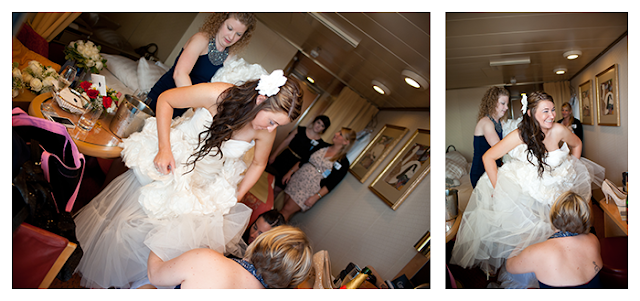 From the hotel where they got ready, we then moved to the cruise ship to do the last minute details.  Her dress... I'm speechless.  It was amazing!